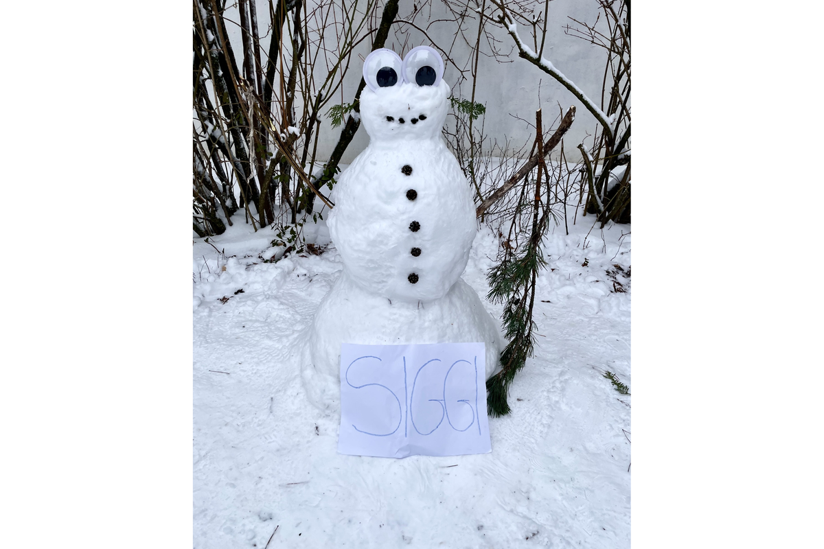 Nachdem vor kurzem endlich auch in Halle Schnee in nennenswerten Mengen in diesem Winter gefallen war, blieben Schülerinnen und Schüler einer Klasse zusammen mit ihrer Lehrkraft nicht untätig. Sie wurden schöpferisch tätig und kreierten in der Pause Siggi. Er oder sie scheint mit großen Augen alles im Blick zu haben und sich dabei ein leichtes Lächeln nicht verkneifen zu können.